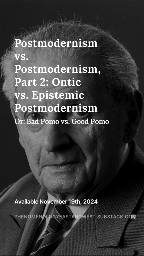 Continue reading on my substack at: https://phenomenologyeastandwest.substack.com/p/postmodernism-vs-postmodernism-part-c1c